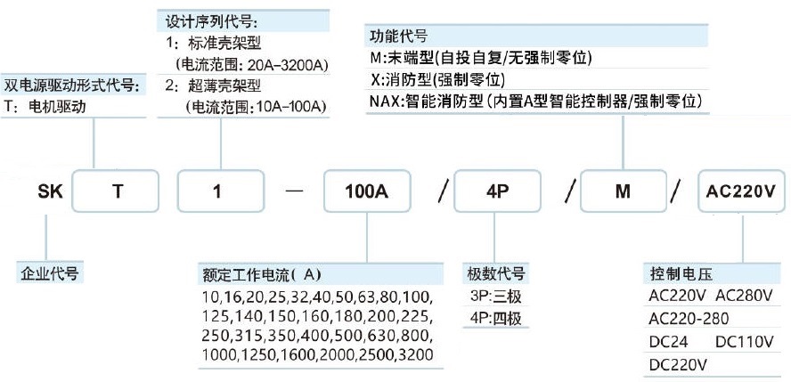SKT1-125/M1/CK双电源自动转换开关适用于供电系统的主电源与备用电源之间自动转换或两台负载设备的自动转换及安全隔离等。开关造型美观、新颖、简洁、体积小、功能全,是不同场合的理想选择。